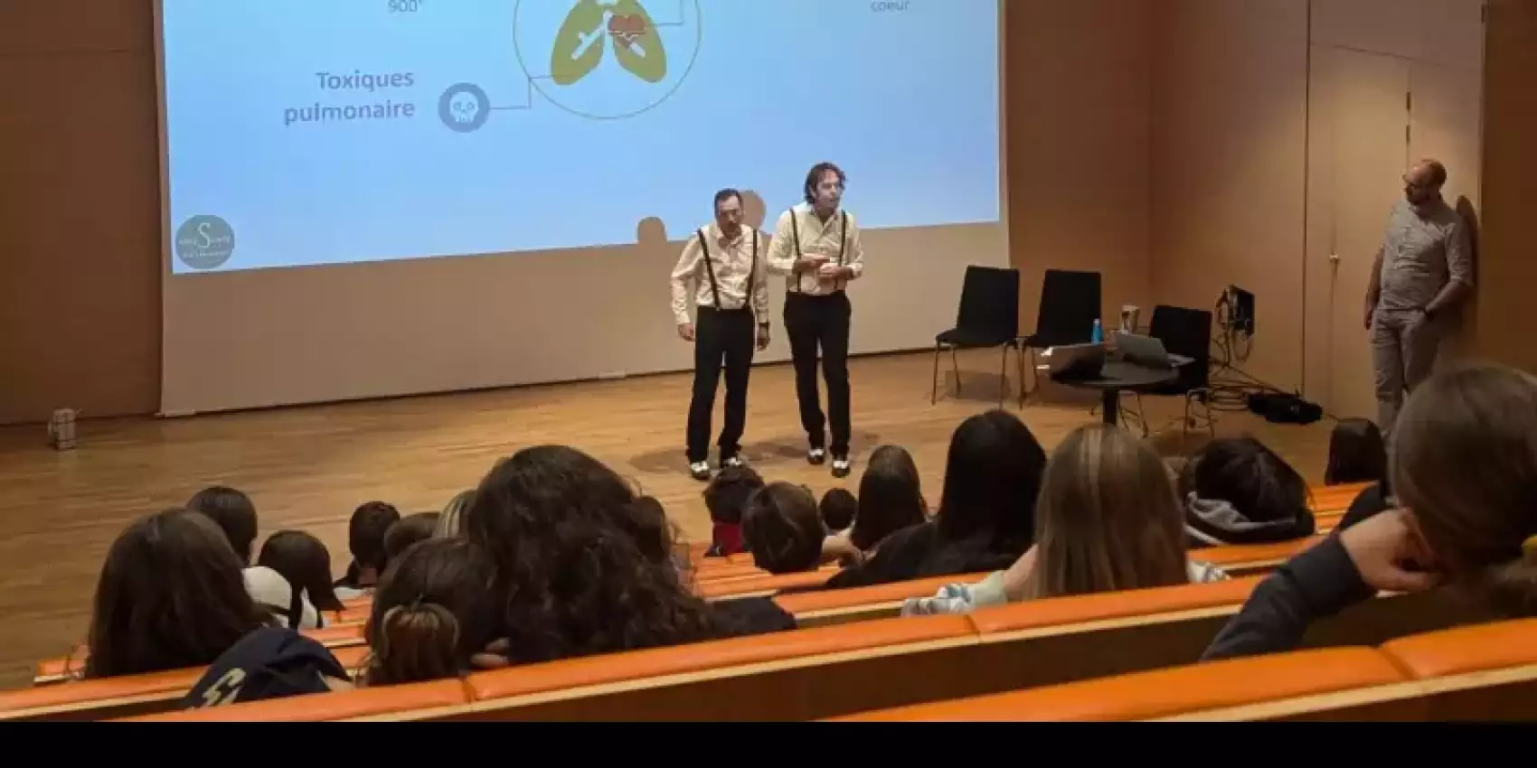 Les comédiens de ligue d'impro de Savoie ont joué un spectacle Impro-Débat sur les addictions, le tabac, l'alcool et les autres formes d'addictions en compagnie de Charles Vanbelle, médecin addictologue.
