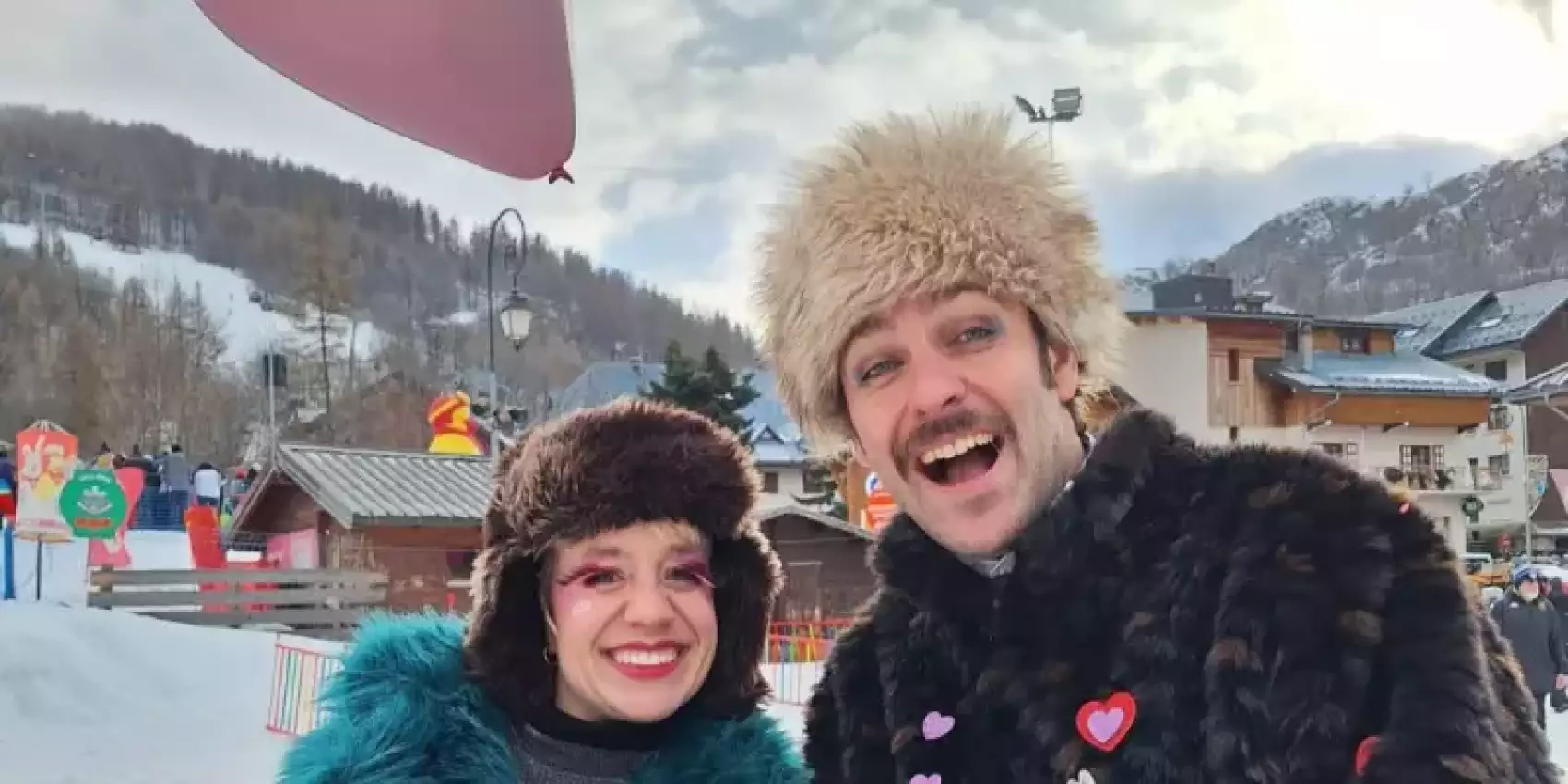 spectacle en déambulation pour la Saint Valentin dans une station de ski